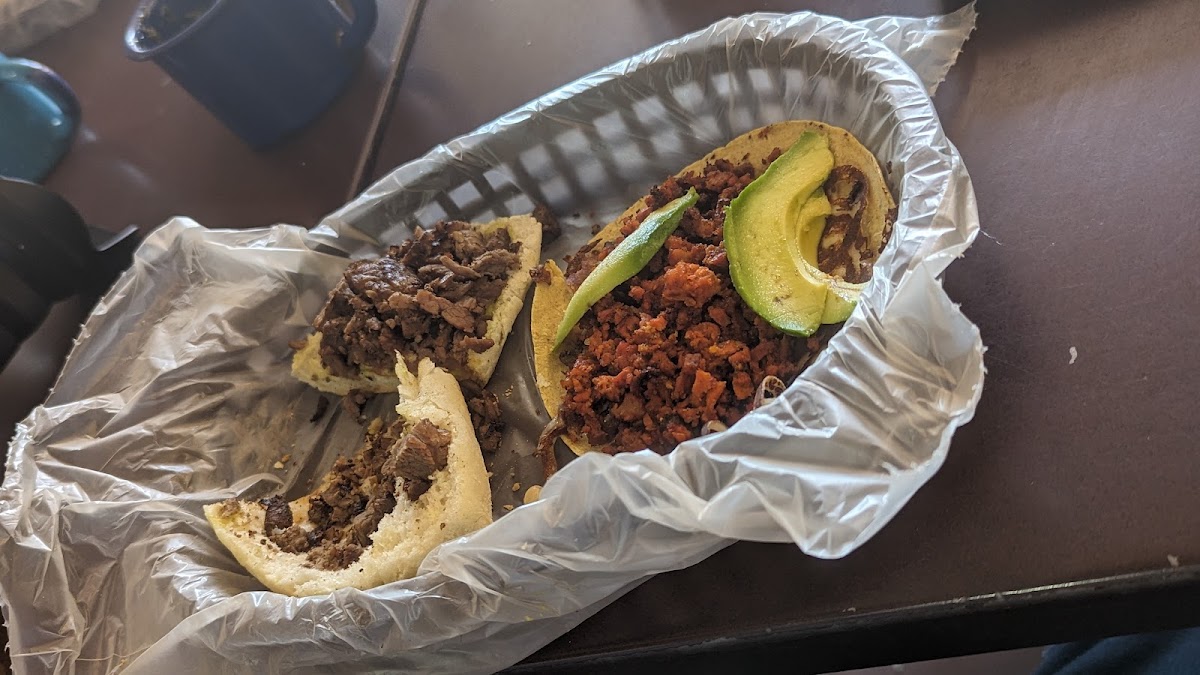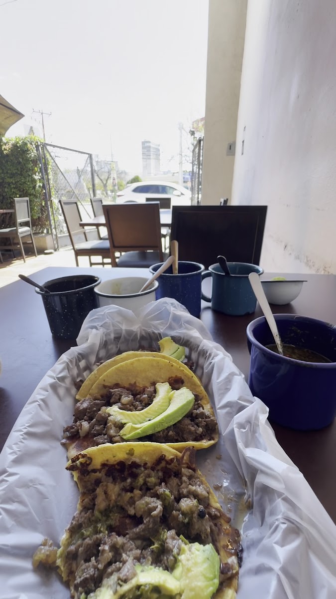 “Very tasty tacos filled with delicious arrachera and ribeye. Finger licking good salsas ! Expensive in relation to other taquerias but worth it.”