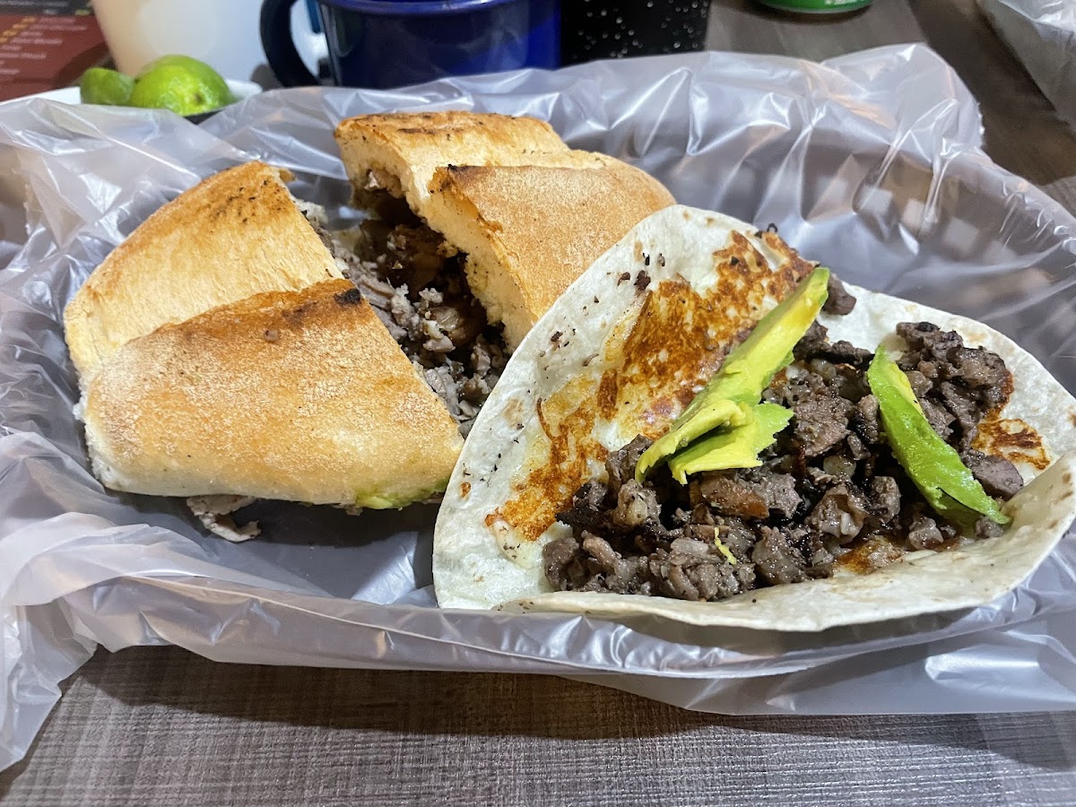 “Great grilled meat sandwiches, and very good salsas. Don't forget to try the tacos, also great. If you want good to go and cook at home, they have great cuts to choose from.”